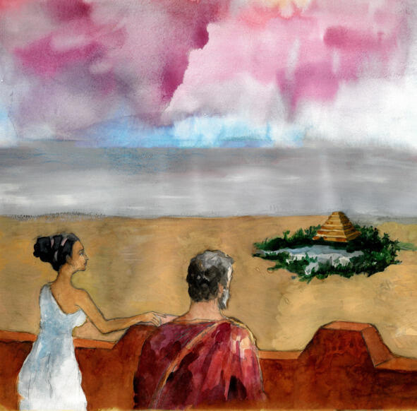 На следующий день делосский философ пришел к Таис очень рано, на рассвете, как будто бы знал, что она не спит. Оставаясь с другой стороны бассейна, он подождал, пока гетера ополоснет лицо прохладной водой, и повел ее на верхний этаж храма. Там располагалась довольно обширная смотровая площадка. Таис еще не поднималась туда и была очарована открывшимся перед ней зрелищем. Вид Мемфиса с вершины Нейт одновременно и удивлял, и завораживал своим природным контрастом. За время пребывания в Египте сознание Таис уже привыкло к величественной сдержанности страны фараонов: бесконечное полотно горячего песка, тяжелые стены основательных построек, строгая симметрия небогатого пустынного ландшафта. Но здесь, с высоты храма, знойное море египетских песков вдруг оживилось яркими островками зелени и длинным горизонтом Нила на фоне невероятно ясного сине-голубого неба. Пирамида Джосера отсюда казалась совсем не гробницей, или молчаливым пристанищем ушедших тел, а каким-то совершенно чудесным мифологическим местом. Этот волшебный рассвет стоил того, чтобы не пропустить его