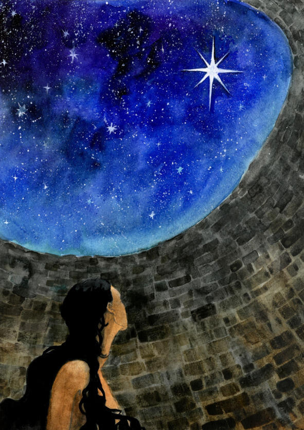 Ее комната для ночлега более не казалась странной. Хотелось снова почувствовать бескрайность ночного неба и пролетающих мимо созвездий. Лежа на дне колодца, Таис вглядывалась в казавшуюся ей сказочной космическую бездну, ожидая, что через мгновение звезды опять закружатся в небесном танце, и она взлетит. Взгляд как будто приковался к одной, самой яркой звезде.