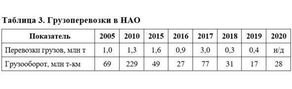 Низкий уровень обеспеченности автомобильными и железными дорогами главный фактор, ограничивающий возможности развития транспорта НАО. Существующие дороги с твердым покрытием: дорога из Нарьян-Мара на село Красное, а также часть межрегиональной трассы на Усинск (продолжение движения на участках, где еще не построена дорога с твердым покрытием, осуществляется по зимникам). Зимники основной вид обустройства трасс для наземного перемещения по территории округа. В западной части округа зимники отчасти повторяют старинный санный путь, вдоль которого возникли первые населенные пункты округа. В восточной части округа сеть зимников существенно гуще: они проложены практически к каждому месторождению. Развит воздушный транспорт (связь обеспечивает Нарьян-Марский авиаотряд), Нарьян-Мар связан прямыми рейсами с Москвой, Санкт-Петербургом, Архангельском, Уфой, Кировом, Сыктывкаром, Екатеринбургом. Для внутренних перевозок используются самолеты типа ТВС-2МС (модернизированные АН-2), а также вертолеты; регулярные рейсы осуществляются в наиболее крупные села округа. Значительную часть авиаперевозок составляет транспортировка вахтовых бригад, а также грузов на месторождения в восточной части округа.