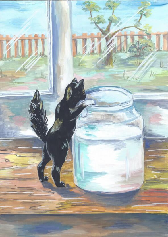 But the wardrobe was very old. And its door was very creaking. The cat didnt think about it at first. He placed the brownie there, but the latter one couldnt sit there inside the wardrobe. So, he began to creak the door getting into the wardrobe and then getting out of it. And the whole family began to suspect something. That is why, the cat started urgently to look for another place for the brownie.