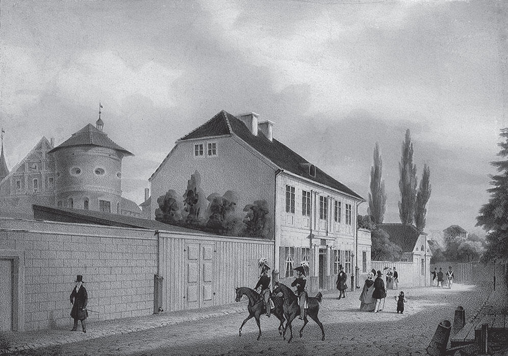 Неизвестный автор. Дом Канта. 1842. На заднем плане башня западной стены Кёнигсбергского замка