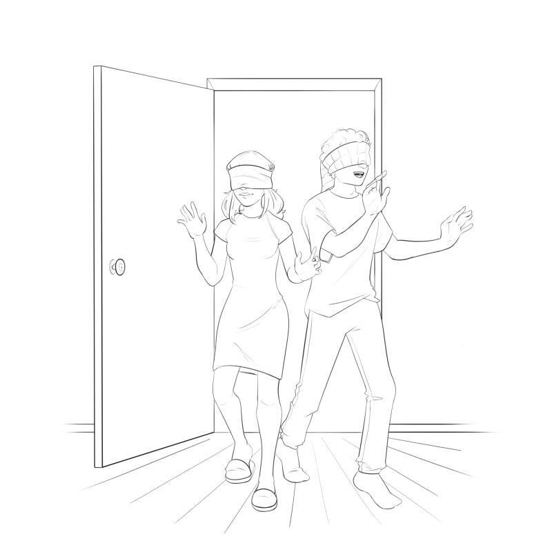 Они повязали глаза шарфиками и с порога принялись друг другу кричать: