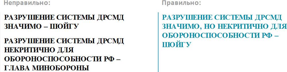 Примечание: «Интерфакс», как и другие крупные агентства, имеет ленты, ориентированные на разные группы пользователей, и это необходимо учитывать. Например, на общеполитической ленте не следует давать молнии, использующие профессиональный сленг или аббревиатуры.