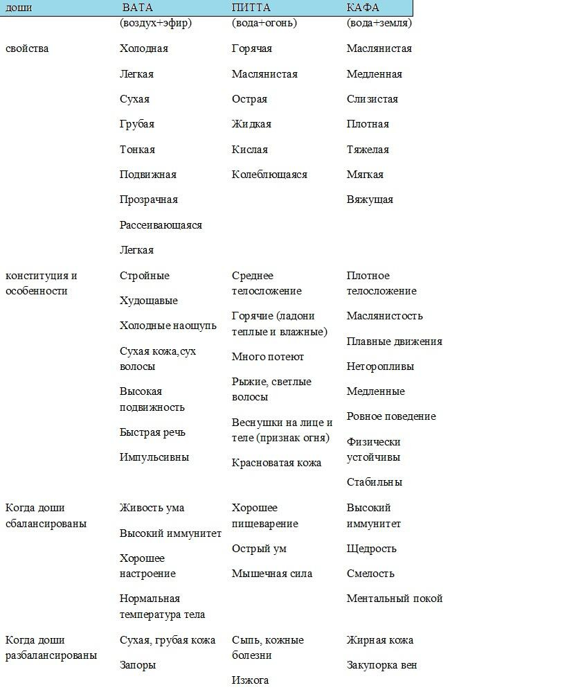 Перейдем непосредственно к дошам, к их свойствам и особенностям: