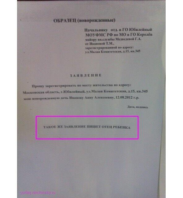 Образец заявления со стенда в отделе УФМС по г. Королёву Московской области. Фото автора.