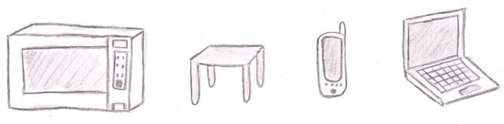 *На картинках: плита, телефон, телевизор, холодильник, стиральная машина, микроволновая печь, утюг, фотоаппарат, компьютер.