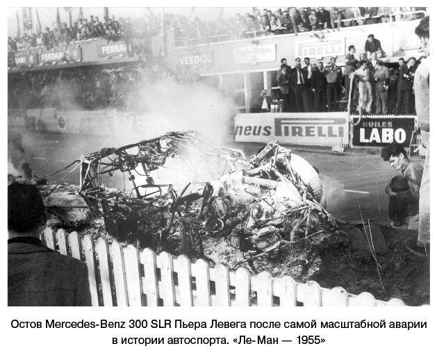 Mercedes с пилотом за рулем мгновенно взмыл в воздух. Металлическая конструкция весом 1360 кг с баком, наполненным легковоспламеняющейся жидкостью, подлетела на 4,5 м над землей и пронеслась на скорости около 240 км/ч в сторону толпы зрителей. Машина ударилась о заграждение и взорвалась. В людей полетели куски горящего металла. То, что еще секунду назад выглядело как тусовка года, украшенная звоном бокалов и ревом моторов, превратилось в сущий кошмар. Десятки людей лежали на земле, истекая кровью. Вокруг бушевало пламя. Кузов автомобиля был изготовлен из магния горючего и взрывоопасного материала, порошок которого когда-то использовался для фотовспышки. Он моментально расплавился и превратился в поток раскаленного металла. Началась паника. Те, кто еще мог стоять на ногах, бросились бежать. Благодаря фотографам, оказавшимся в тот момент на трибунах, до нас дошли черно-белые снимки застывших в ужасе лиц.