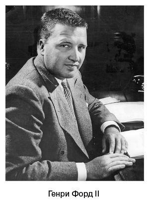 Генри Форд, 1909 г.Генри II открыл глаза. Было почти 8:00, 10 ноября 1960 г. Он нащупал пальцами ног тапочки с вышитой на них монограммой HFII, побрился левой рукой, так же, как это делал его дед, облачился в рубашку (тоже с монограммой), идеально сидящий костюм и вышел из своего 75-комнатного особняка в Гросс-Пойнте, озаряемый лучами осеннего мичиганского солнца.