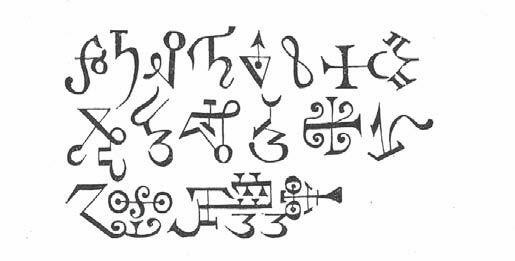 Демон часто навещал вновь обращенную жертву, утешал ее и в заключение вручал ей документы, которые свидетельствовали о ее формальном приеме в царство преисподней. Это и был договор, на котором каждый вновь приобщенный ставил свою подпись. Обыкновенно его писали собственной кровью, а демон прикладывал к нему свой коготь. Я отыскал в богословском трактате, напечатанном в 1625 году Жильбером де Восом, факсимиле таких подписей, оставленных духами. На этом рисунке видно, что все места, которых касались пальцы демона, покрыты ржавчиной и выжжены; на другом рисунке виден след, оставленный духом на договоре. Далее я приведу письмо демона, сохранившееся в Национальной библиотеке и испещренное орфографическими ошибками.