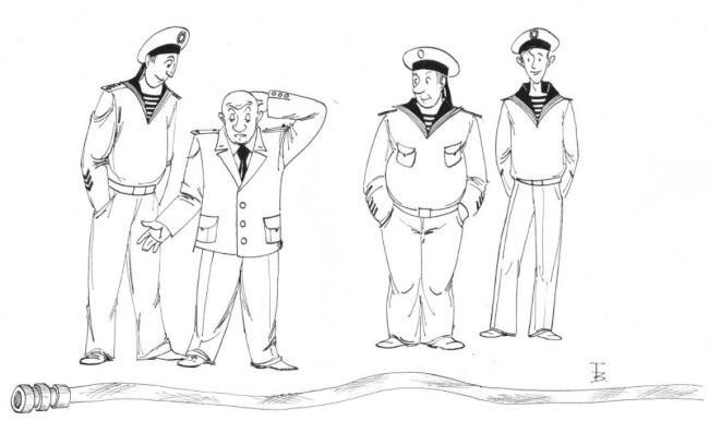 Офицер, по инерции тоже отдал честь и тут же спохватившись, бросился наверх, причем, в большей степени испугавшись за безопасность курсанта. Когда он вбежал на четвертый этаж, то застал только развернутый по коридору пожарный шланг и стоящего по стойке смирно дневального. Окно было закрыто. Капитан 3 ранга подбежал к дневальному с вопросом: Где самовольщик?