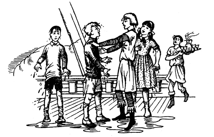 Эй, Ринельф! окликнул Каспиан одного из моряков. Принеси вина с пряностями для их величеств им надо согреться после этого купания.