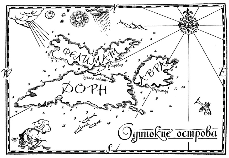 Люси, беседовавшая с Ринсом на полуюте, сбежала вниз по трапу и бросилась вперёд. За ней последовал Эдмунд. Каспиан, Дриниан и Рипичип оказались уже на полубаке. Прохладным утром небо было бледное, а море тёмно-синее с небольшими белыми гребешками пены, и там, немного с правого борта, виднелся ближайший из Одиноких островов, Фелимат, возвышаясь зелёным холмом над морем, а за ним, подальше, виднелись серые склоны Дорна.