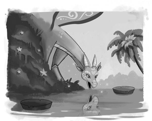 Азмина отпрыгнула от озера и резко обернулась, чтобы посмотреть в лицо тому, кто стоял позади неё. Но девочка была совсем одна. Она огляделась, однако ничего не увидела. Может быть, существо находилось под водой, или, возможно, ей всё это показалось? Азмина вернулась обратно к озеру и заглянула ещё раз.