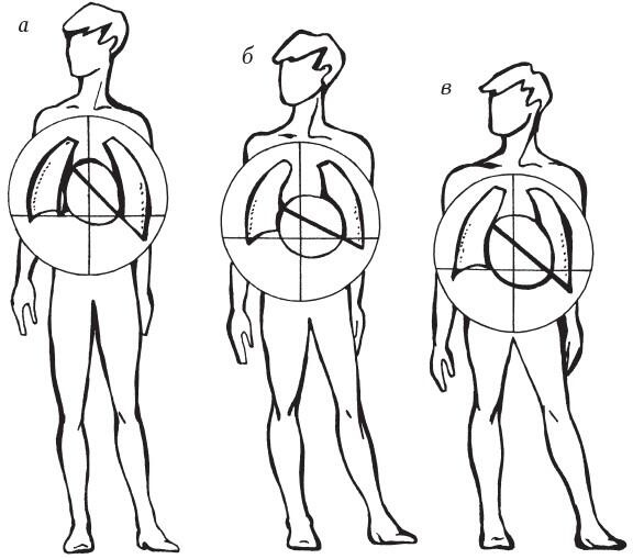 Рисунок 6. Особенности положения сердца в зависимости от телосложения человека: