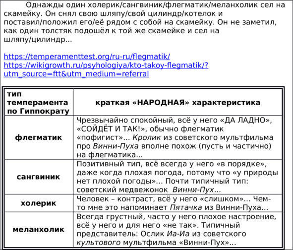 Карикатура Х. Бидструпа «Четыре темперамента» + Video клипы из советского Винни-Пуха и Диснеевского (для сравнения темпераментов)