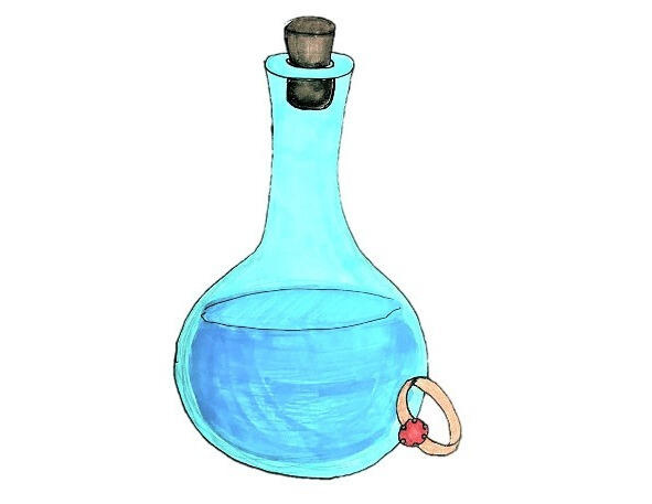 Вот наступил вечер, младшая перекинула колечко с пальчика на пальчик, и вдруг со звоном колокольчиков перед ней появился маленький человечек в шляпе, поклонился в пол и говорит: