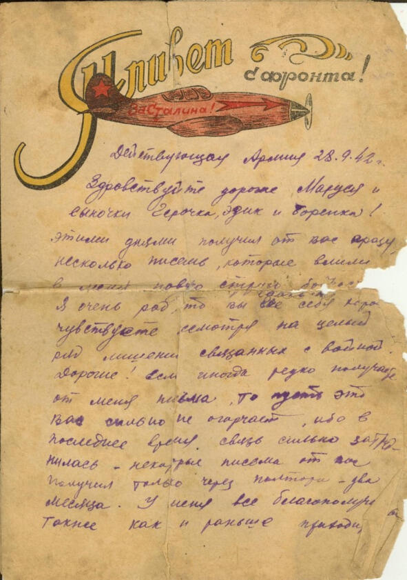 Письмо деда с фронта от 28. 09. 1942, стр. 1