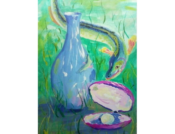Прознал об этом царь. Попросил принести ему несколько глиняных изделий, о которых весь дворец говорил, что это за чудесные вещицы. Принесли царю вазы и сосуды, которые Тихомир изготовил с собственным узором и рисунком. Царя такие изделия впечатлили. Изображения на вазах были не простые, а действия какие -то изображены, и показалось царю, что вазы можно расставить в определенном порядке и получится, что один рисунок вытекает из другого, и продолжает его третий. Но как царь не переставлял вазы, не получалось у него ладной длинной картины действий.