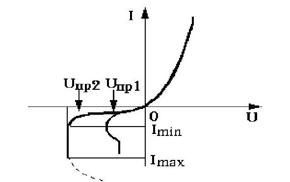 2.8-расмда «р-n» ўтиш эга бўлган ярим ўтказгичли диоднинг вольт-ампер тавсифномаси (ВАТ) келтирилган.