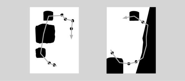 Используя это свойство мы можем прокладывать маршруты для взгляда зрителя. Так, например, если мы подсознательно начали исследовать черные пятна как фигуры на нашем изображении, мы должны сознательно приложить усилия, чтобы переключиться на белый фон. В противном случае наши глаза следуют от одного черного пятна к следующему.