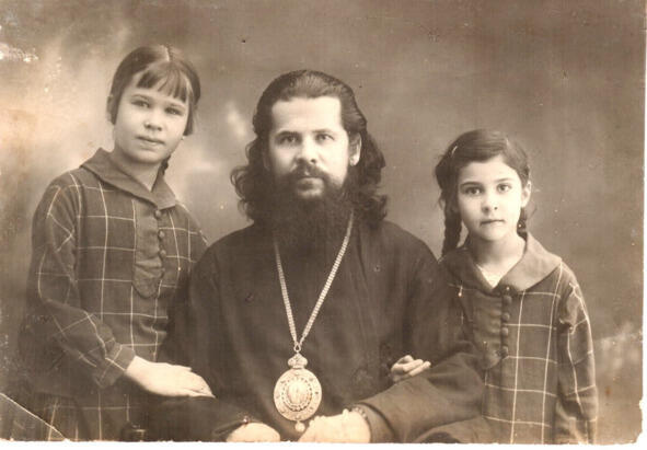 Епископ Августин (Беляев) с дочерями Юлией (слева) и Ниной. 1926год.