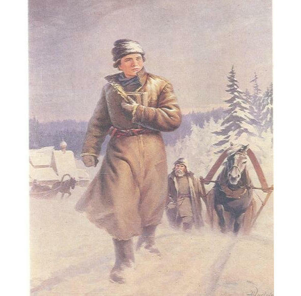 Декабрь 1730 года в Холмогорах выдался холодным. Мороз и стужа заставляли крестьян прятаться по своим избам. Дома сидел и 19-летний Михайло, который с горечью думал о своей судьбе.