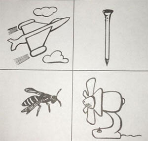Лишний гвоздь. Самолет издает гудение, пчела жужжит, кондиционер жужжащий шум издает, а гвоздь не издает.