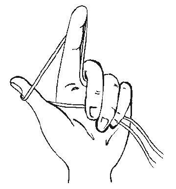 Рисунок 2. Положение нити на левой руке при наборе петель