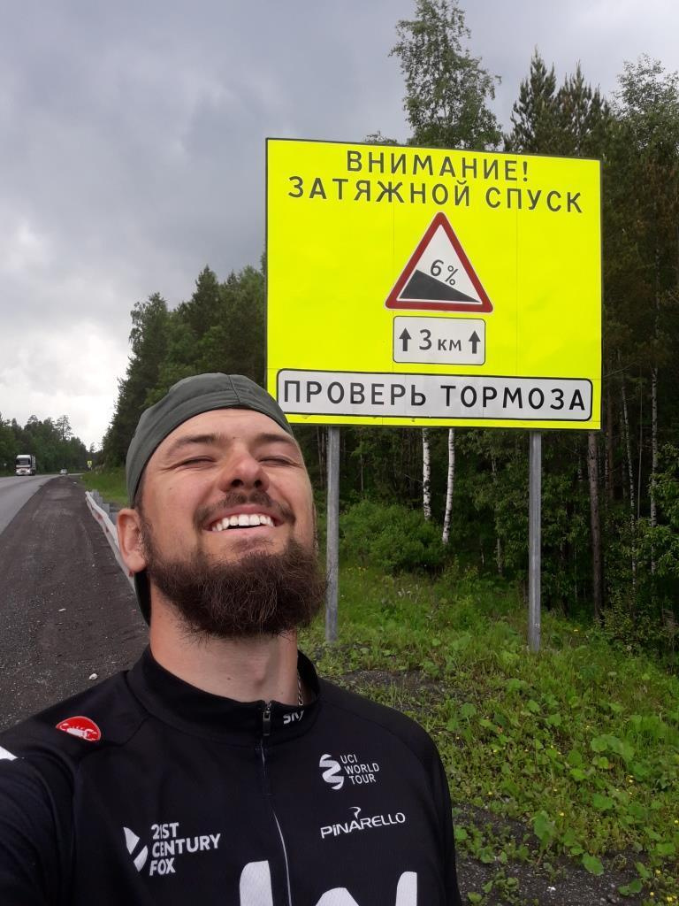 Отсутствие уюта дополнялось рельефом дороги, затяжные подъемы выматывали сильно. Дорога постоянно петляла, и на этих поворотах было сложно разъезжаться с фурами. Грузовики проносились мимо, в каких-то сантиметрах от меня. Это ужасно пугало, казалось, что вот сейчас тебя зацепит чем-нибудь и утянет вслед за машиной. И так раз за разом. Поток фур не прекращался, переждать их было невозможно, а дорога была одна. Пришлось ехать и материться на каждую машину, которая пролетала мимо, как будто норовя снести тебя с дороги в очередной скалистый обрыв. Ноги требовали вернуть омскую равнину, мышцы деревенели, начинало сводить судорогой. Но после нескольких часов работы всё же произошла адаптация. Организм вспомнил изнуряющие лыжные тренировки и армейские марш-броски. Были моменты, когда хотелось слезть с велосипеда и просто тащить его за собой. В такие моменты включался азарт, было дикое желание покорить абсолютно все уральские подъемы на своём пути. Что и было успешно сделано!
