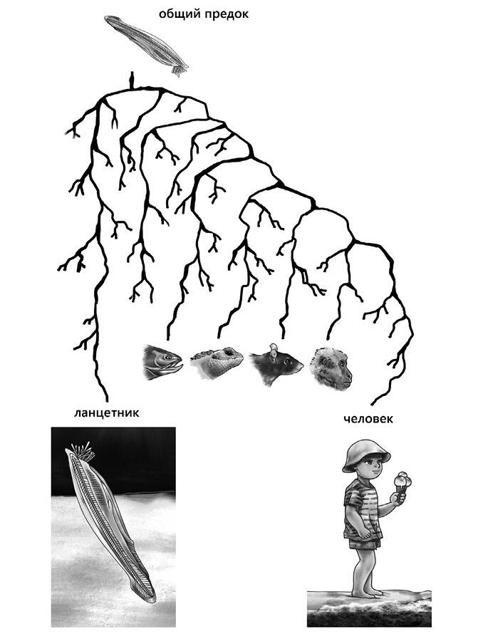 Мы не эволюционировали напрямую от ланцетников, но у нас с ними общий предок, очень похожий на тех ланцетников, которых можно увидеть в наши дни