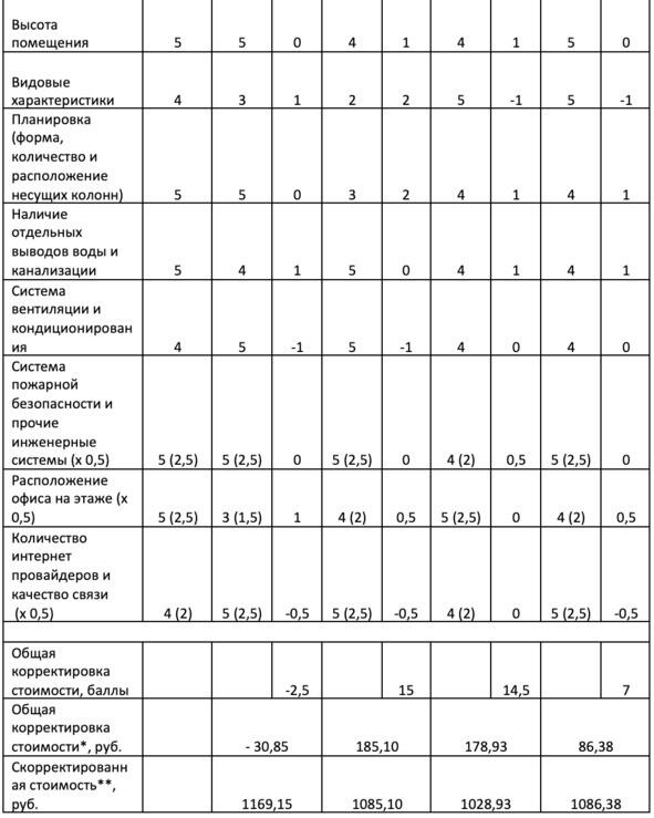 ** Скорректированная стоимость объектов сравнения имеет расчетное значение. Она не является справедливой рыночной ценой сравниваемых объектов.