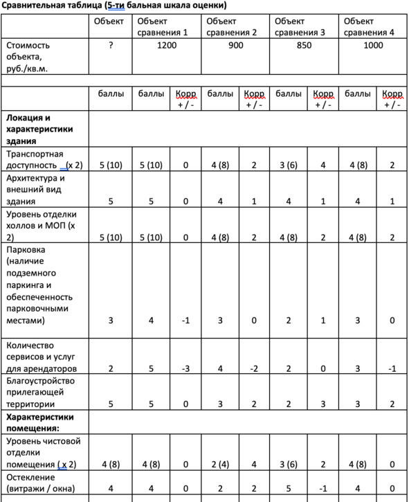 Стоимость балла = Средняя стоимость объектов сравнения / количество критериев / количество объектов.