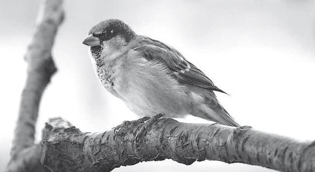 Воробей маленькая, неунывающая, бойкая птичка. Про него часто говорят: «серый воробышек». А ведь на самом деле воробей совсем не серый. Спинка у него коричневая с широкими продольными полосами. Хвост темно-бурый, крылышки тоже темно-бурые, украшенные рыжеватой каймой, подбородок и горло черные, а вот головка серая.