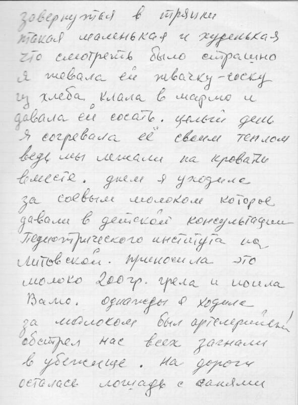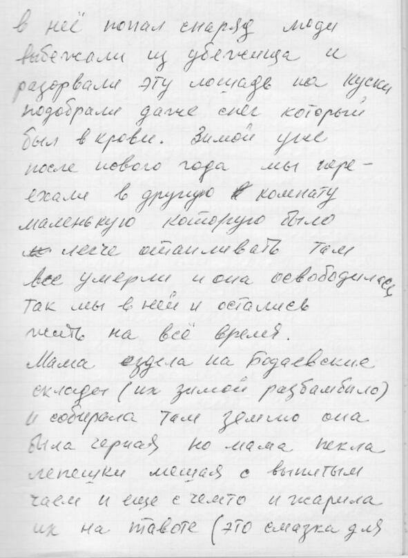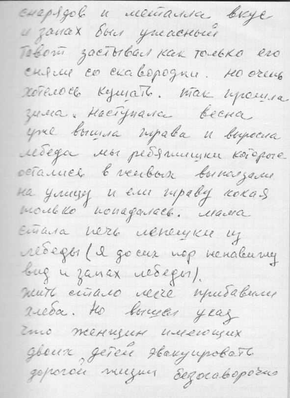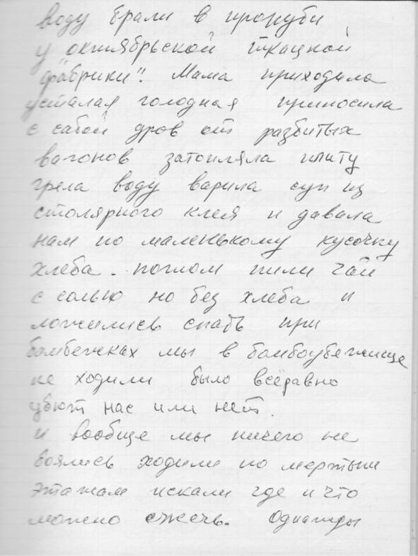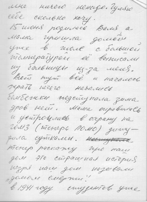 Откроют рассказ о войне воспоминания тёти Тани, Татьяны Николаевны Юфа. Тогда, в далеком 1941 году она была просто Таня Дегтярёва и жила в Ленинграде на Нейшлотском переулке в доме 23, что стоит у самой железной дороги, рядом с Финляндским вокзалом.