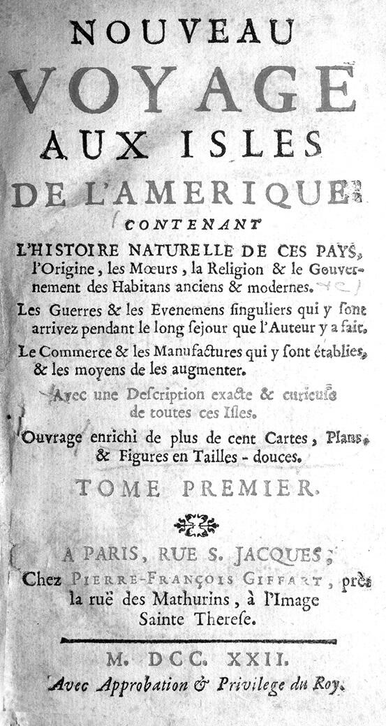 Рис. 2. Текст одобрения и привилегии, напечатанный перед сочинением Nouveau voyage aux isles de lAmérique. Некоторые замечания в тексте привилегии (здесь приведена только первая часть) указывают на юридические действия, осуществленные ради ее коммерческого использования: 1. Книга включена в официальный реестр Парижской гильдии издателей и книготорговцев. 2. Автор, Ф. Ж.-Б. Лаба, официально отказался от привилегии, которую ему предоставили, в пользу двух книготорговцев: Жиффара и Кавелье-сына. (Как сказано выше, только книготорговцы и издатели имели право продавать книги.) 3. Жиффар и Кавелье-сын подтвердили, что разделили права, предоставляемые привилегией, между четырьмя участниками: каждый оставил себе одну четвертую долю участия в привилегии, а две другие они передали Кавелье-отцу и Теодору Легра, тоже книготорговцам