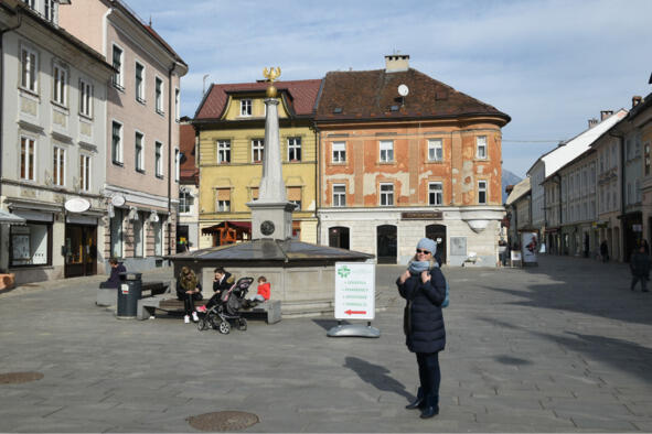 У фонтана на Главной площади (Glavni trg)