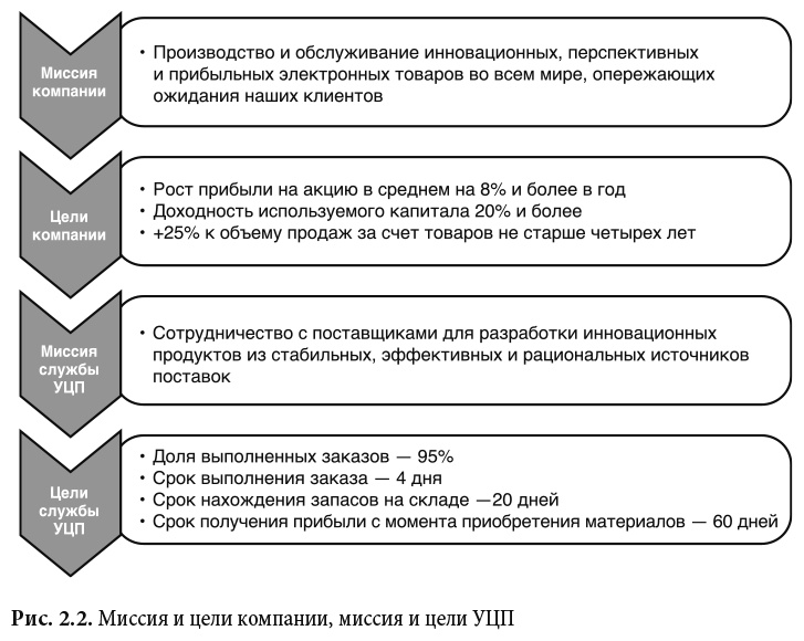 Иногда, в среднем и крупном бизнесе разные функции или подразделения могут иметь свои собственные миссии, но большинство их целей соотносятся с общей миссией и целями компании (см. рис. 2.2).