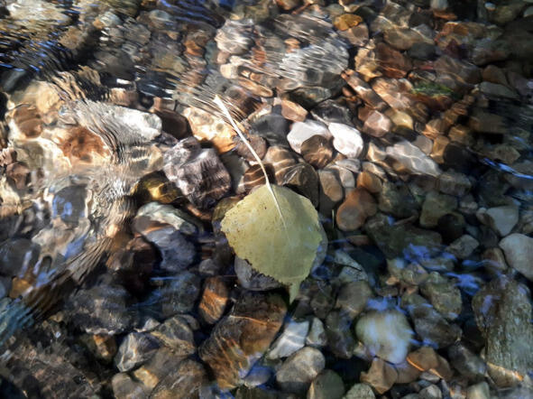 Осень уже наступает на пятки Вода прозрачная в реке течёт круглый год, а листики жёлтые уже плавают