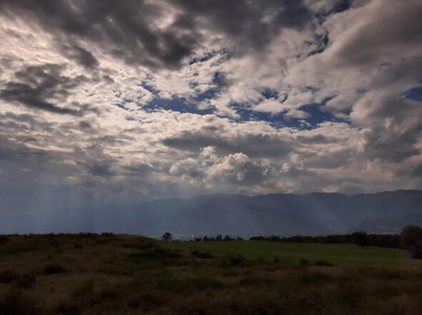 А это уже снято днём на микро платО горушки Мон (т) МурЭ (Mont Mourex-Mont Mussy) c видом на Юрские горы. Это если смотреть «направо». А если взглянуть оттуда же «налево» = то там уже совсем другой вид: озеро Леман (Женевское) и Монблан на заднем фоне (если погода и видимость позволяют).