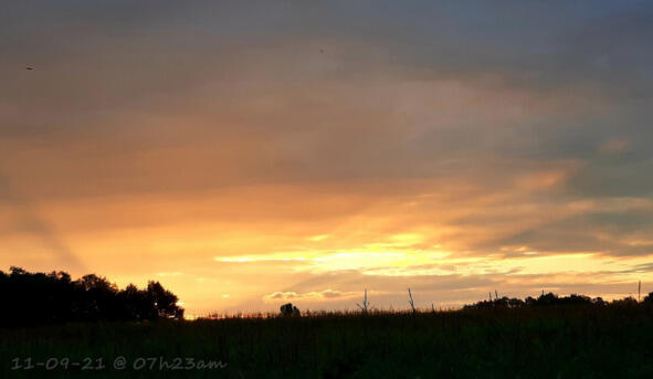 Вот и солнышко пробивается сквозь кусты с деревьями и утренний туман