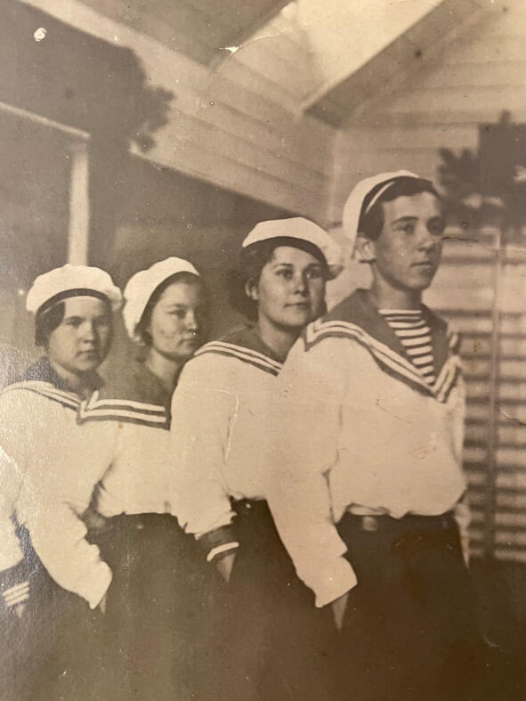 25 декабря 1937 г. М-Чесноковская железнодорожная школа. 910 классы. Матросский танец Справа Евгений Гладков