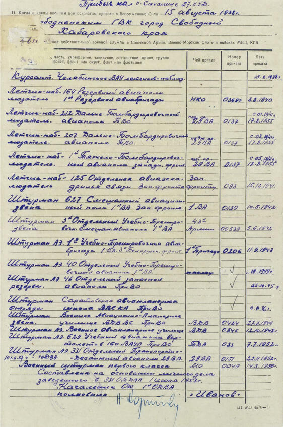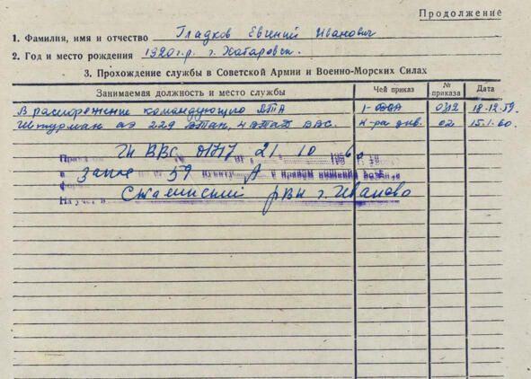 Согласно учетно-послужной карточке, период прохождения военной службы Е. И. Гладкова в календарном исчислении составил более 22 лет: