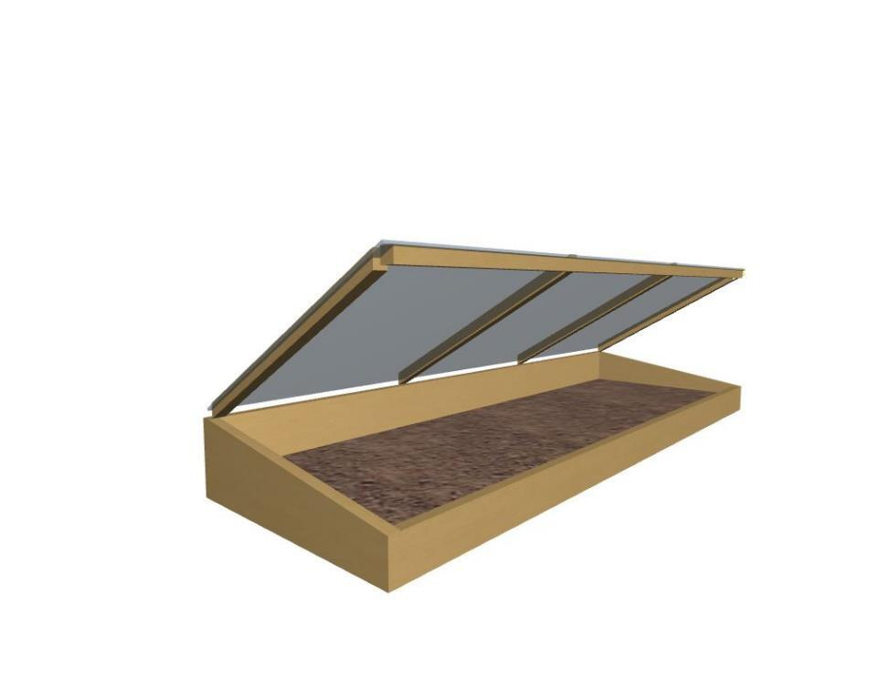 Построить такой парник можно своими руками из простых материалов: доски, бруски, поликарбонат, уголки, петли. Нижний ярус делаем из четырех досок 40х150 мм. Верхний с одной стороны (длинной) целую доску, с двух прилегающих (коротких) из доски, распиленной по диагонали. Сверху закрепляем каркас с поликарбонатом (рис. 1.3). Размещаем парник на участке так, чтобы уклон был в южную сторону, это обеспечит хороший прогрев как весной, так и осенью.