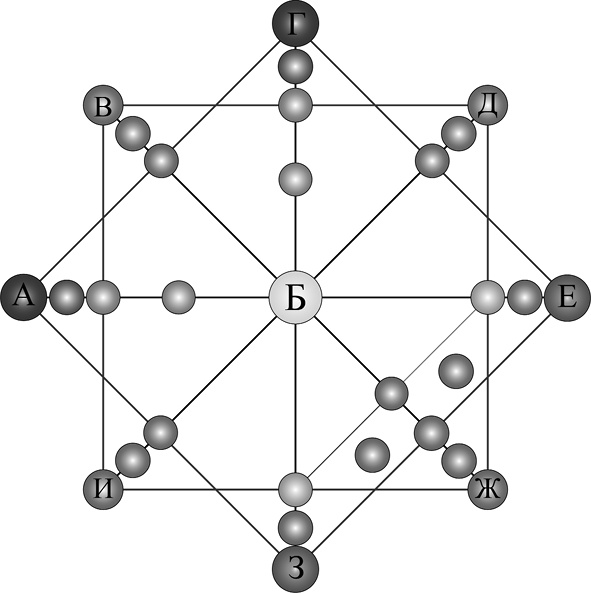 В левом углу сетки найдите зону, которая на нашей картинке обозначена буквой А. Аркан этой зоны совпадает с днем вашего рождения (либо является суммой его цифр, если вы родились после 22 числа любого месяца), ведь именно с него и началось бы построение матрицы, если бы мы не пользовались онлайн-сервисами, а чертили ее вручную.