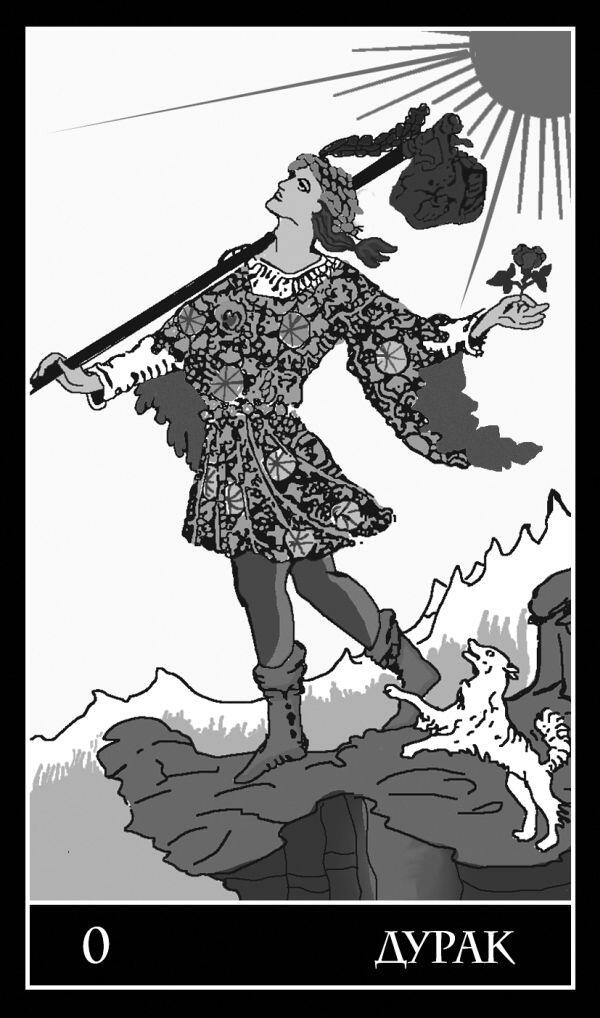Если вы посмотрите на карту XXII Аркана (рис. 2), то увидите там мужчину, который смотрит вверх. Взгляд вверх означает, что человек настроен на сигнал из Есод, то есть чувствует, ловит Сигнал Системы о том, как должно быть. В этом состоянии мы иногда находимся, к примеру, когда попадаем в какую-то ситуацию и почему-то ведем себя в ней по-другому. Подобное точно случалось, если у вас хоть немного есть XXII Аркан. К примеру, на работе себя вы ведете так, а дома уже иначе. Почему происходит эта смена роли? Потому что если вы на работе начнете вести себя как дома, то возникнут неприятности, и наоборот. Бывает даже такое, что с каждым человеком вы ведете себя немного по-разному.