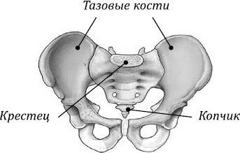 Таз состоит из четырех костей: двух тазовых, крестца и копчика (рис. 12).