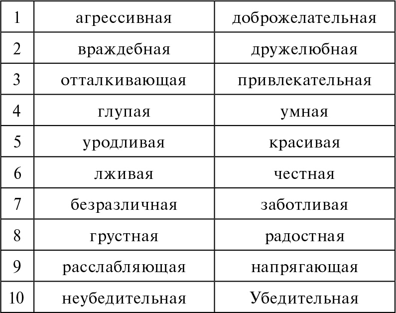 На втором этапе, респондентам предлагалось оценить с помощью шкал семантического дифференциала (см. таблицу 1) некую «идеальную», по их мнению, рекламу на транспорте по методике семантического дифференциала.