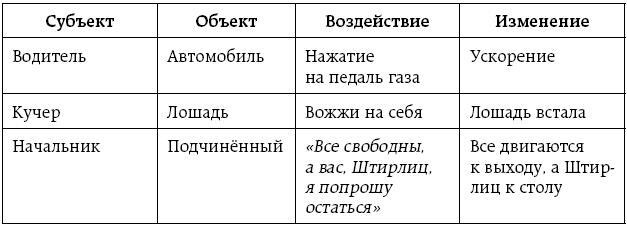 Отличие субъекта от объекта в том, что первый оказывает воздействие на второго тем или иным образом. Но до тех пор, пока, например, пульт телевизора лежит в стороне, и вы его не трогаете, никакого воздействия на телевизор не осуществляется, и вы не являетесь субъектом, а он объектом управления. Включение, переключение каналов, изменение громкости, в конце концов, выключение это и есть воздействие. Одного воздействия для того, чтобы понять, что процесс управления состоялся, недостаточно. Управление произойдёт лишь в том случае, если в результате оказанного воздействия возникнет соответствующее изменение деятельности объекта. То есть телевизор адекватно ответит на ваши манипуляции с кнопками: выключится, включится, прибавит громкость, сменит канал и т. п. Однако, если нет электричества, в пульте сели батарейки или какой-то из приборов неисправен, то сколько бы пользователь ни жал на кнопку, ничего не произойдёт, а следовательно, не будет реализован процесс управления. Та же история и с любыми объектами управления. Включая подчинённых.