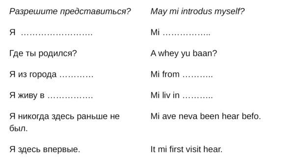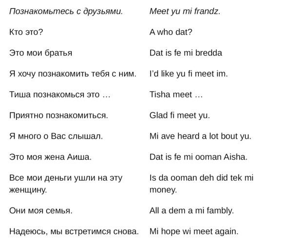 Русско-ямайский разговорник