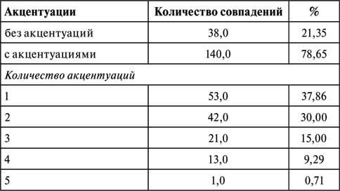 Видно, что 78,65 % испытуемых имеют акцентуацию характера и только 21,35 % являются неакцентированными личностями. Из 178 респондентов 53 имеют одну акцентуацию в характере (37,86 %), две акцентуации имеют 42 студента (30 %) и 21 человек наделен тремя акцентуациями (15 %).